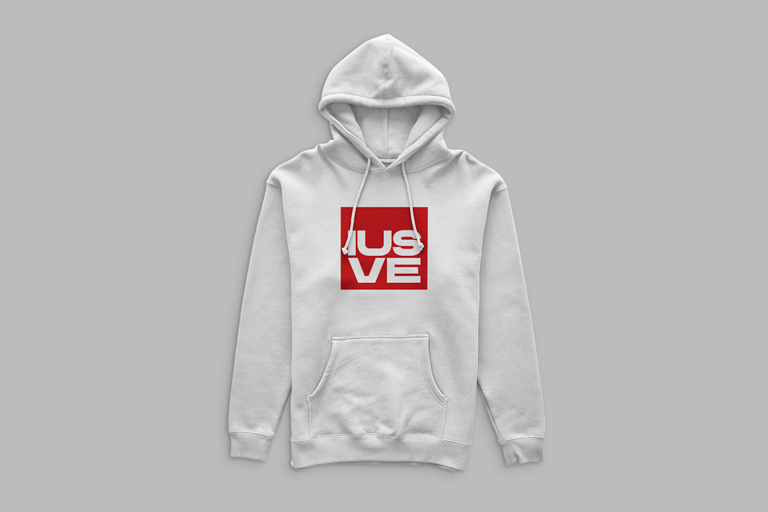 Felpa unisex con cappuccio di color bianco. Morbida e dalle linee essenziali, con logo IUSVE stampato
