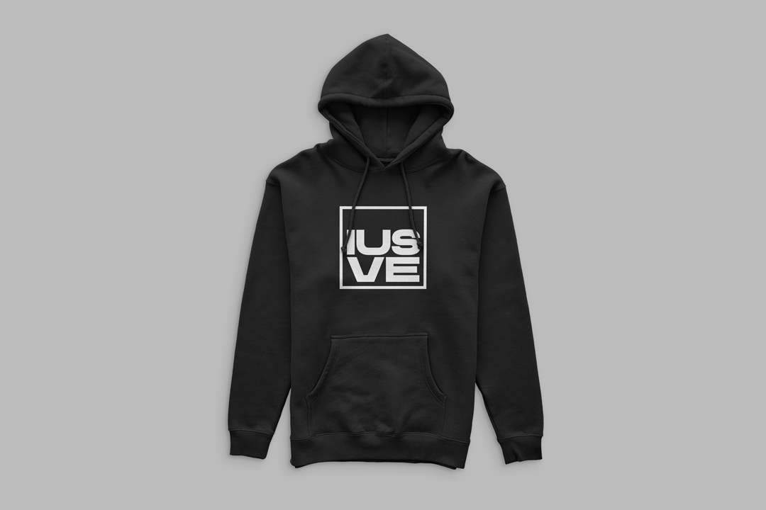 Felpa unisex con cappuccio di color nero. Morbida e dalle linee essenziali, con logo IUSVE stampato