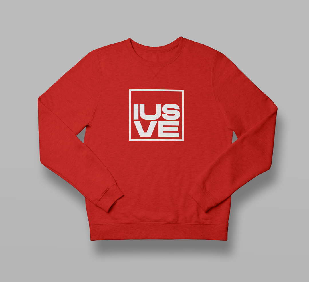 Felpa unisex girocollo di color rosso. Morbida e dalle linee essenziali, con logo IUSVE stampato